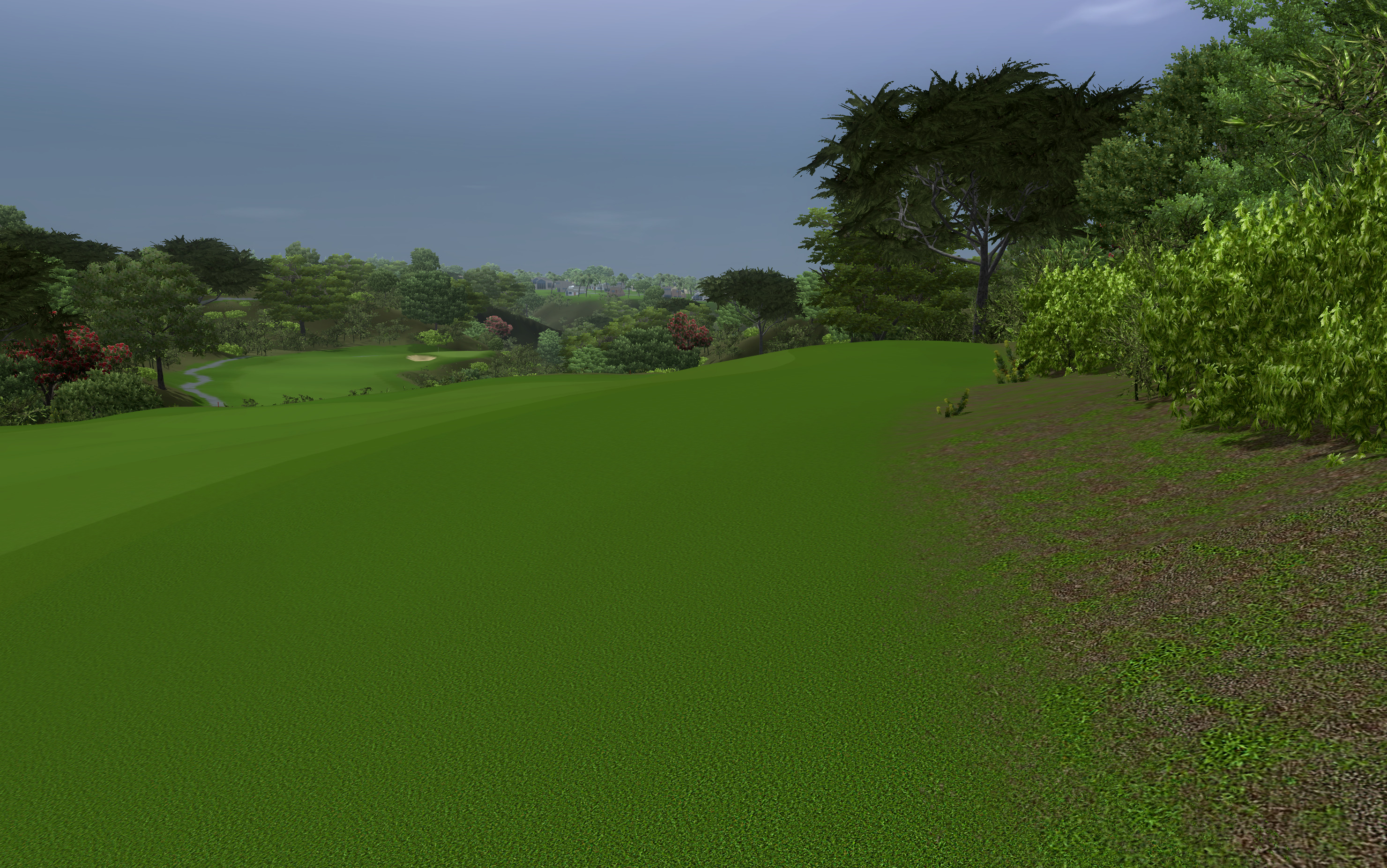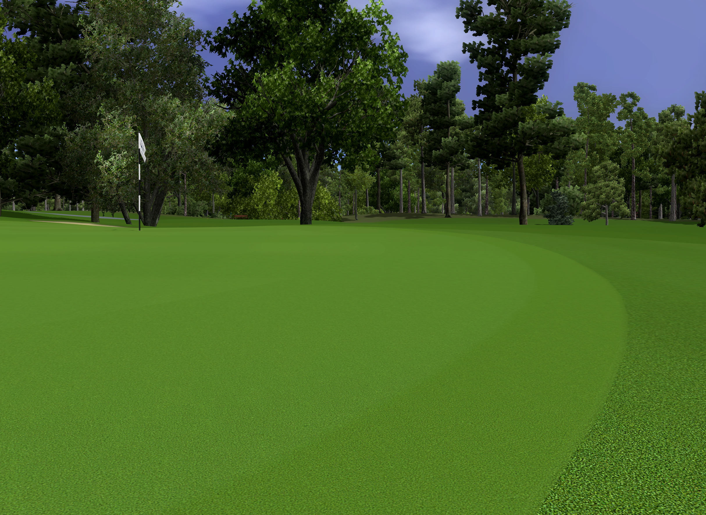 I use MASK 52.tga for blends on cart paths, roads or other paved areas in the rough. If the path crosses the fairway or first cut I suggest trying MASK 51.tga in those areas for a sharper edge. I do not know what looks best in this case though as this situation has not come up for me in a course design yet. You can again use MASK 79.tga in place of either if you prefer to simplify things and use just one blend for all grass cuts.